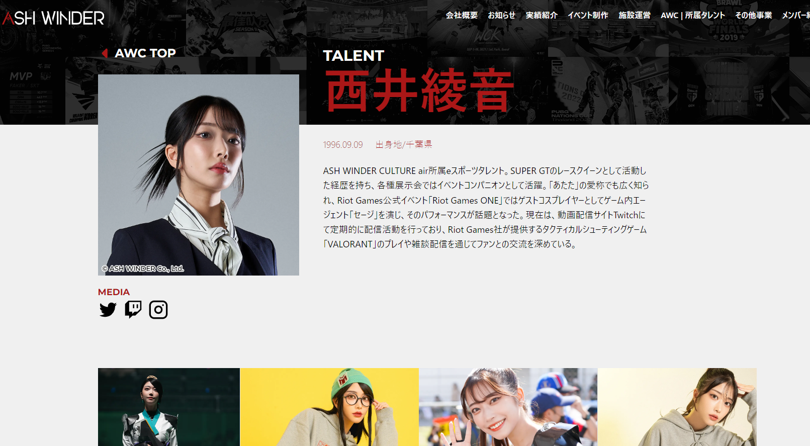 ASH WINDER ホームページ 宣材写真【eスポーツタレント】西井 綾音様担当